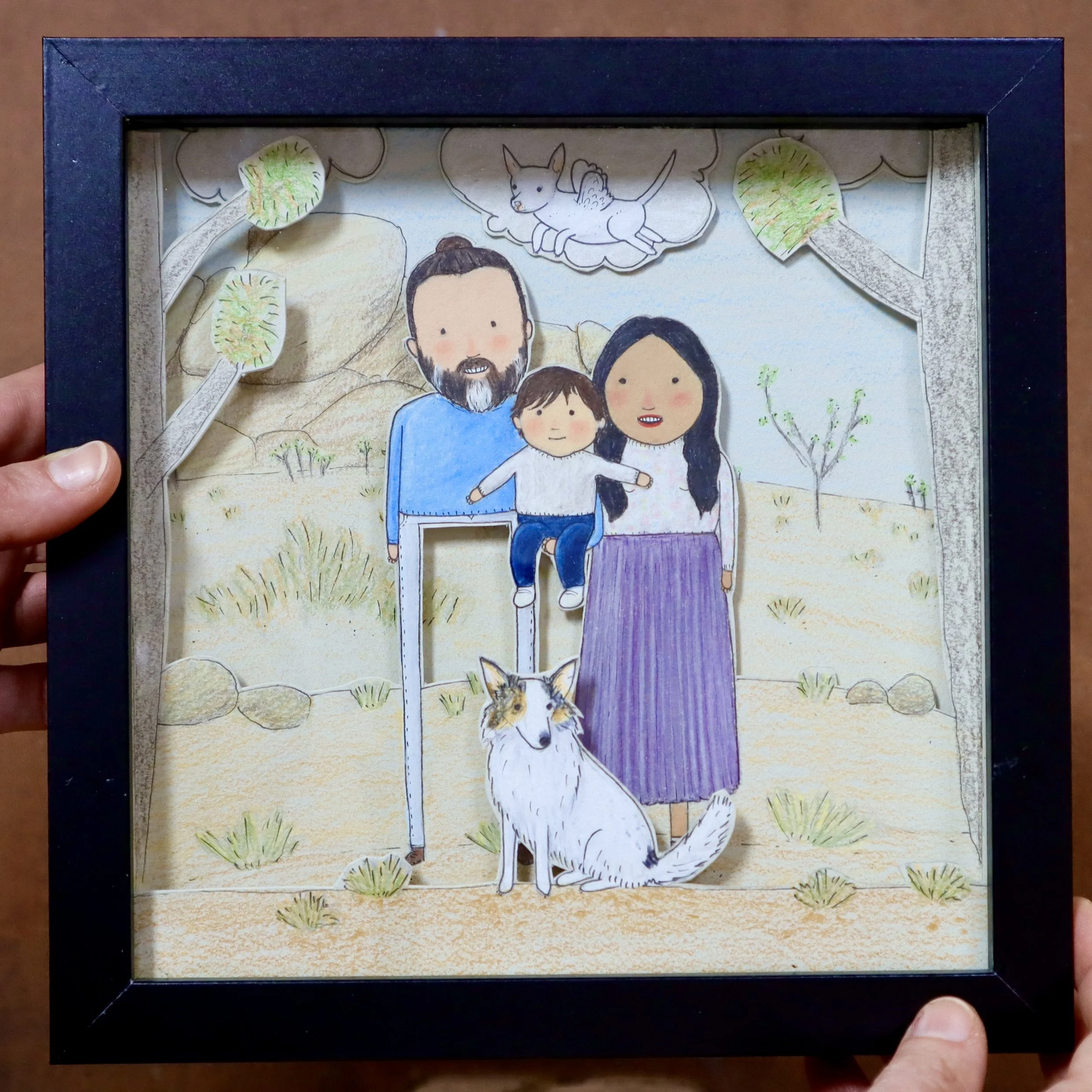 I got the portrait the week after our "two-week wait," during which we learned that our third IVF cycle after Théo had also been unsuccessful. Your drawing of our family was such a beautiful reminder that, even on the darkest days, we have each other." - Doreenda